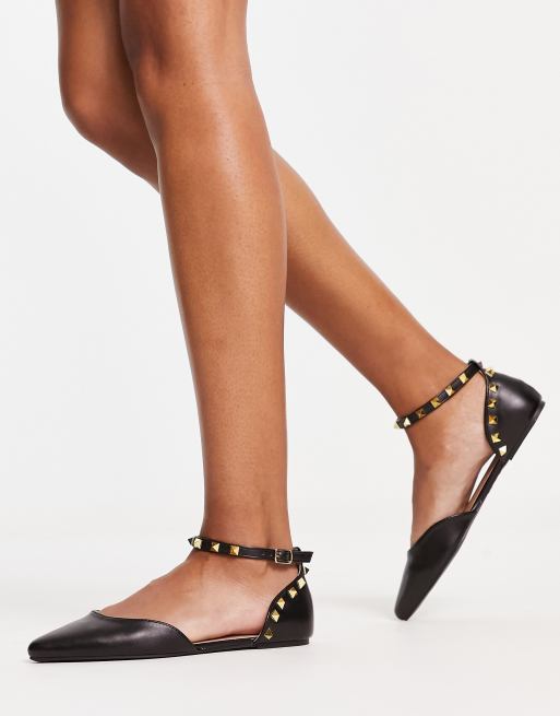 New Look studded back ankle strap flat shoes in black ASOS Are Ankle Strap Shoes Flattering — ankle strap shoes create a visual imbalance in your overall figure that would not be pleasing to you. — however, there are some ways to wear ankle strap sandals in a flattering way if you have large calves and ankles. — flat ankle strap sandals paired with short, tailored shorts can offer a clean, attractive, and. Are Ankle Strap Shoes Flattering.